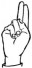 На ћирилици написано ЛАБУДА БОГДАНОВИЋ састоји се из 16 слова [?]. Исписано ћириличном једноручном азбуком за глувонеме: